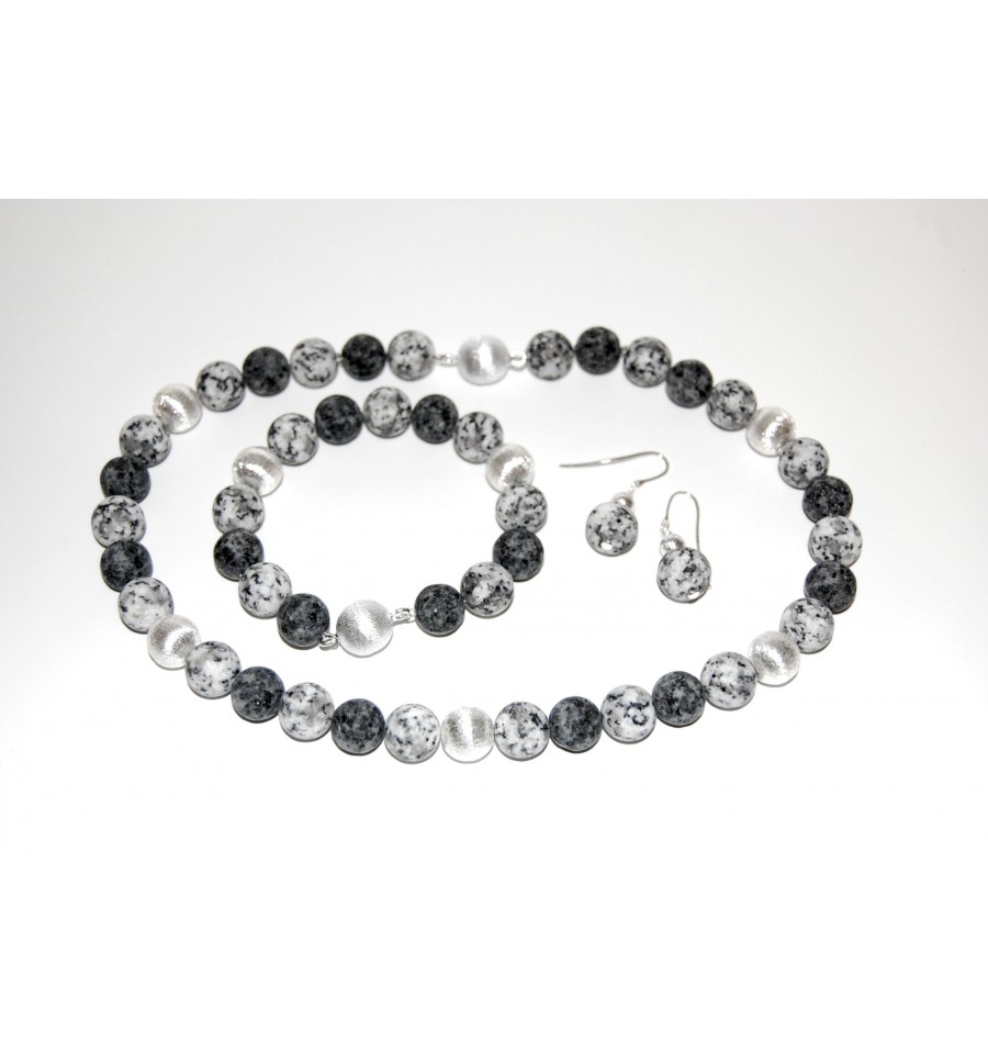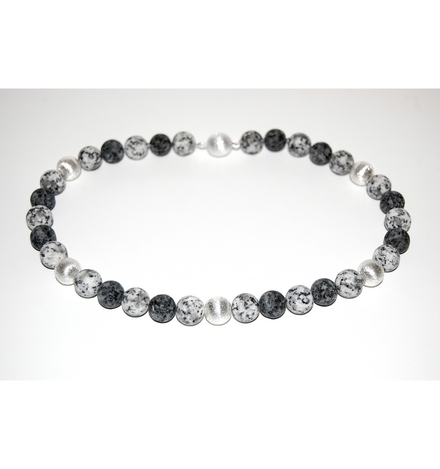 Granitkugelkette matt 12mm mit Silber